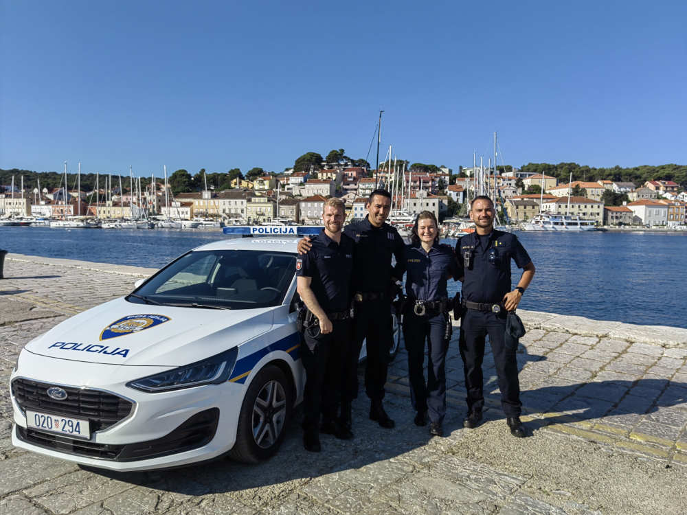 Ich wurde herzlich empfangen und in den Dienstalltag integriert. Sprachliche Barrieren im dienstlichen Miteinander gab es keine. Die Dienste Seit 2015 besteht zwischen dem LPP Niedersachsen und der Polizeiabteilung des kroatischen MI eine bilaterale Kooperationsvereinbarung (sog. MoU), die aufgrund des Projektes „Safe Tourist Destination“ erstellt wurde, bestanden aus Tag- und Nachtschichten, in denen Streife gefahren, Fußstreife gelaufen, Einsätze bewältigt und Verkehrsüberwachung durchgeführt oder Präventionsarbeit betrieben wurde. Den deutschsprachigen Touristinnen und Touristen konnte ich bei Problemen helfen, polizeiliche Maßnahmen erklären und Hinweise zum Urlaub geben. Mein persönliches Highlight der Verwendung im Ausland war ein Event mit allen ca. 100 internationalen Kolleginnen und Kollegen aus insgesamt 20 Ländern, die am Projekt teilgenommen haben (u.a. aus Polen, Ungarn, China, Südkorea).