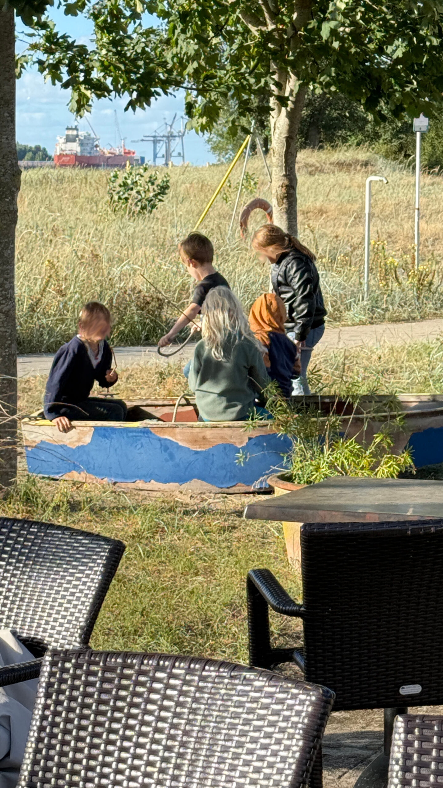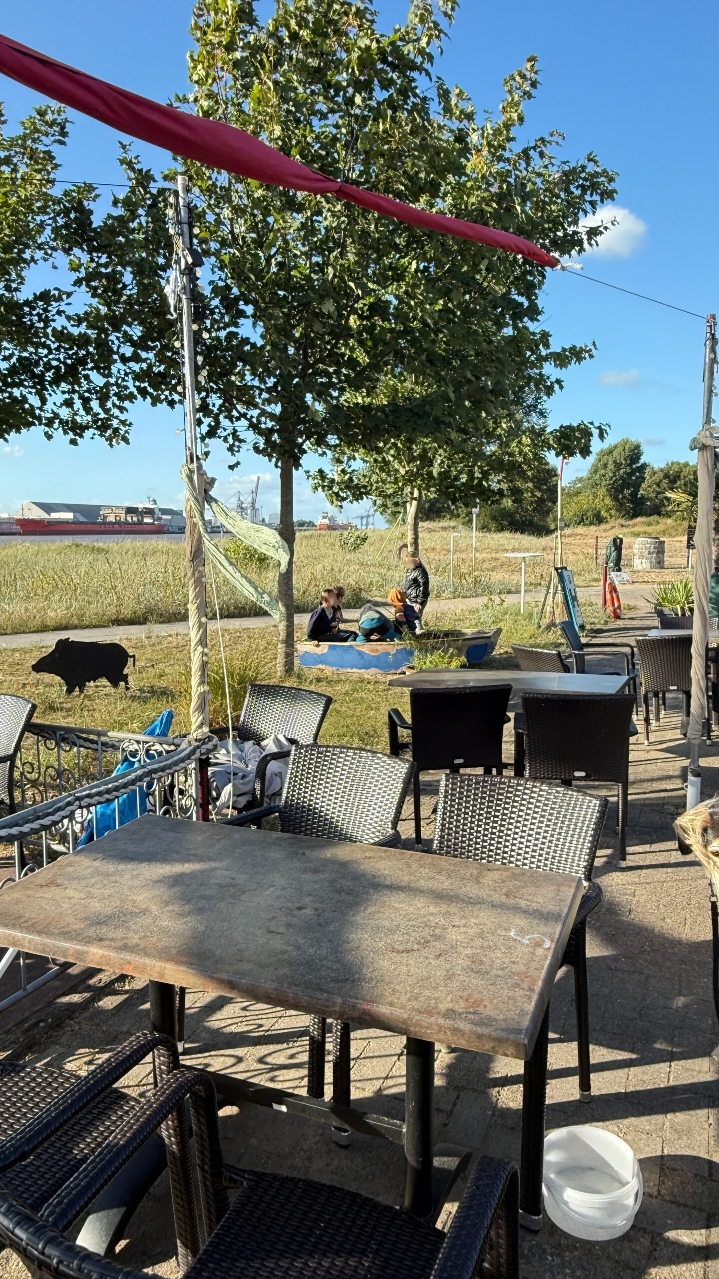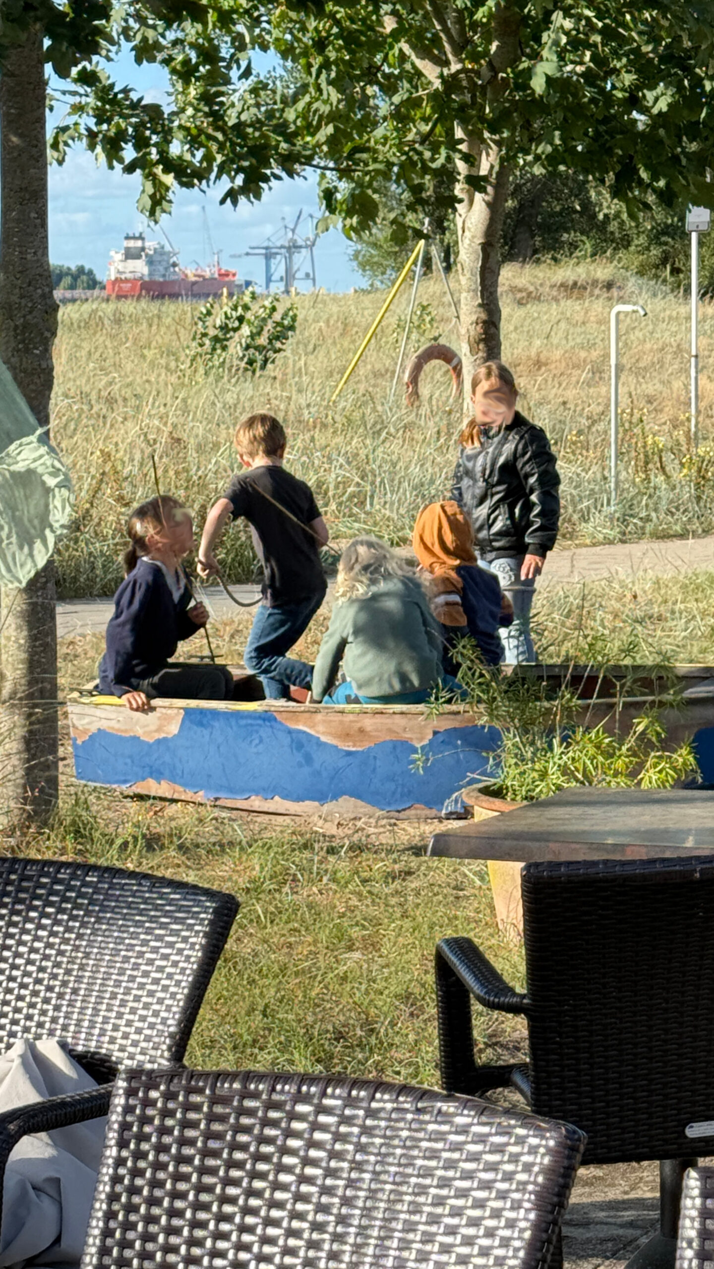 Nach so viel Input hatten wir uns eine kleine Auszeit verdient – und die gab’s, dank einer Fußgängerfähre, auf der Flussinsel Harriersand. Dort warteten nicht nur kühle Getränke und leckeres Essen auf uns, sondern auch ein schöner Blick aufs Wasser. Während die Kinder ausgelassen am Ufer tobten, genossen die Erwachsenen die entspannte Atmosphäre – und das eine oder andere heitere Gespräch.